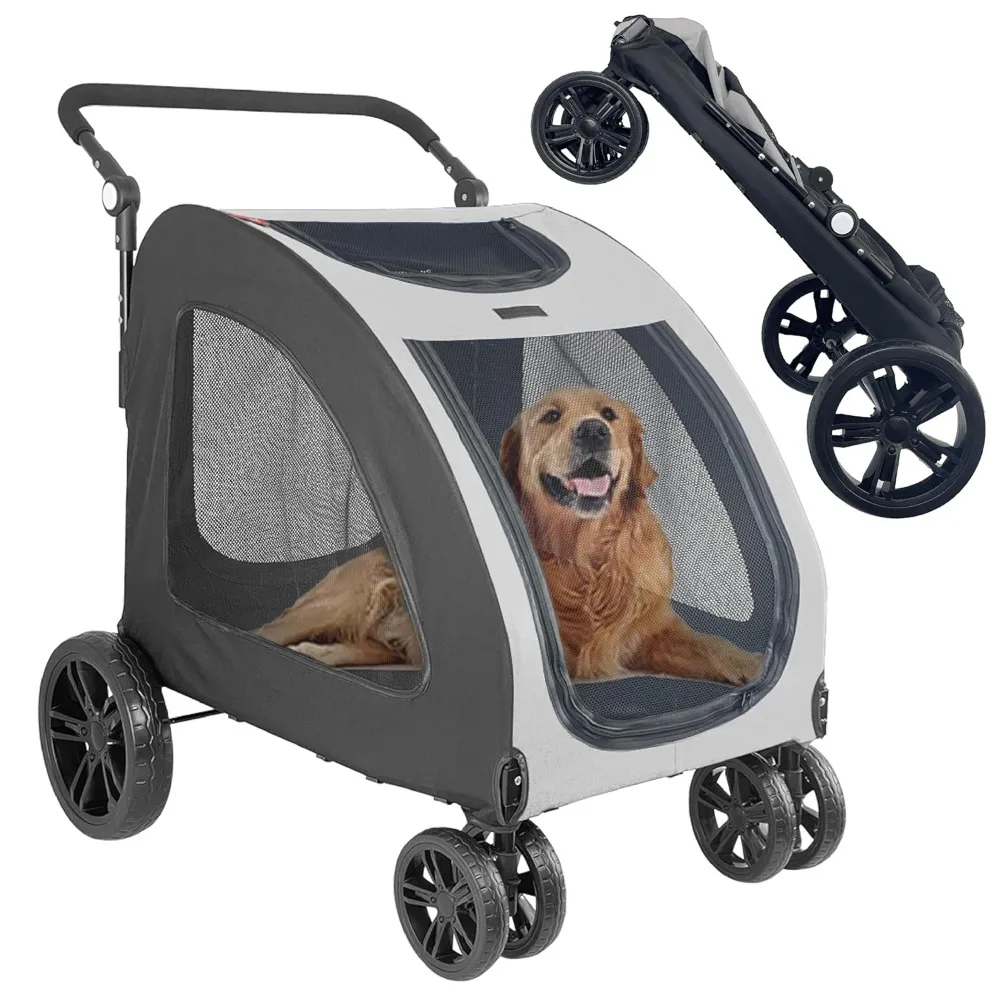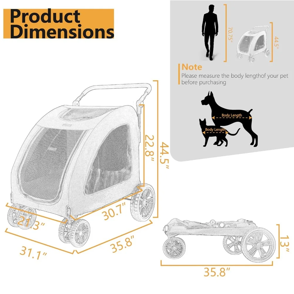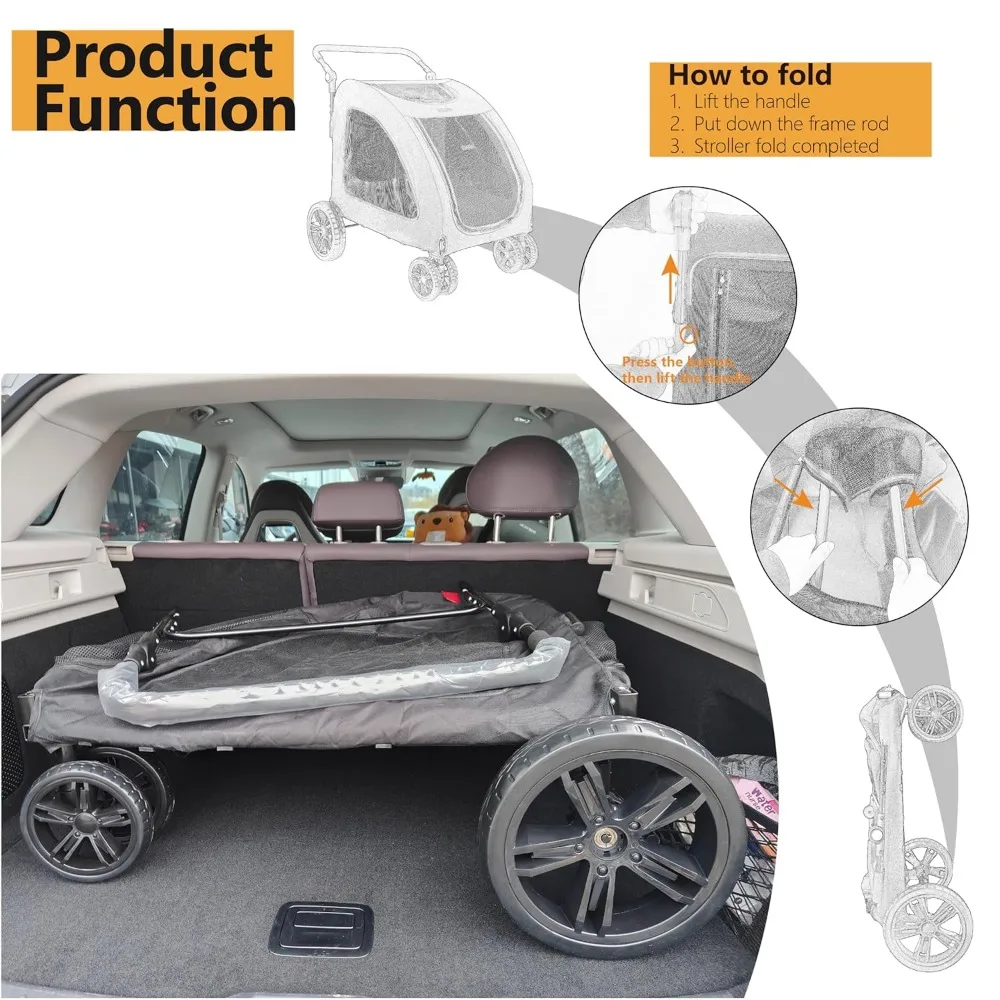 - 【Suitable for Big Dogs】 The stroller’s Oxford material is very wear-resistant and can support a maximum load of 110 lbs, making it suitable for medium-sized dogs, such as Golden Retrievers and Labradors