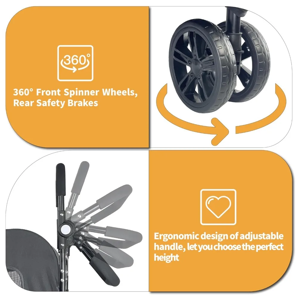 - 【Flexible and Secure】The two front wheels can rotate 360 degrees, while the two rear wheels have brakes to ensure maximum safety