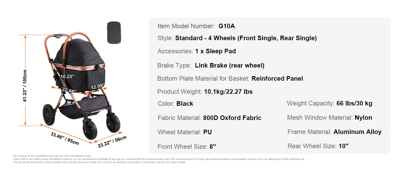 • 66 lbs Weight Capacity: This pet stroller features a robust aluminum alloy frame and rust-resistant coating, ensuring durability and longevity. Whether it’s a leisurely park stroll or a long journey, it provides your pet’s comfort and safety.