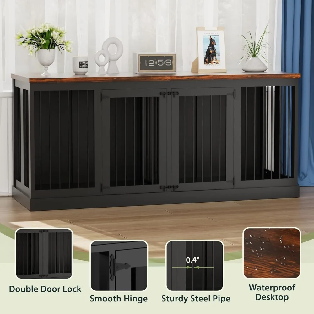 - 【Change Room Types Flexibly】 dog crate for large dog is equipped with a removable divider in the middle of the two cages. You can easily switch between one or two rooms by assembling and disassembling. Double door design allows it more convenient for dogs to go in and out, equipped with locks to ensure safety.