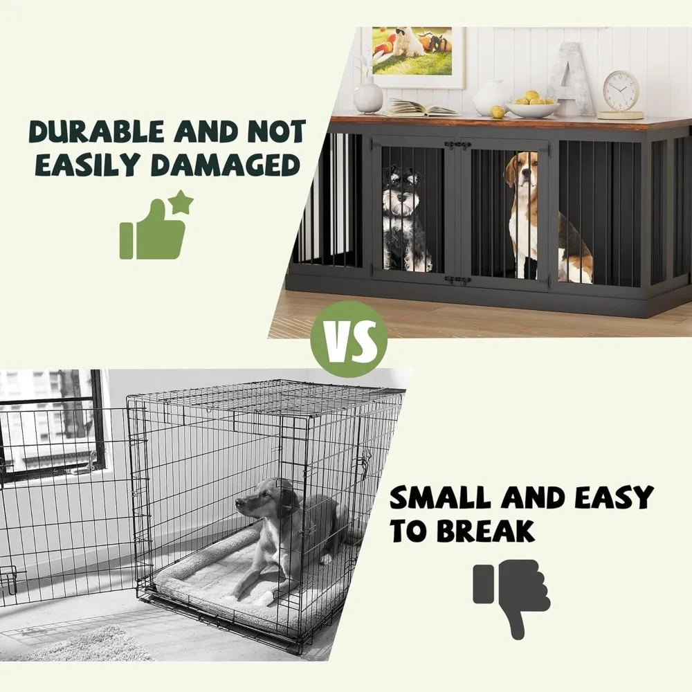 - 【Sturdy Ironwood Structure】This large indoor dog crate is made with durable P2 particleboard and iron for pet-safe durability and long service life, it’s more comfortable, durable and easier to clean compared than others, providing a durable, stable and safe resting place for your dogs.