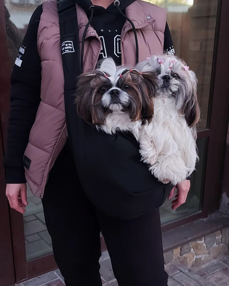 3.Enlarge the body, suitable for pets within 10 kg(22 pound) (ps: the model carries a dog of about 10 kg), there is no problem with bearing weight, as long as the owner can carry it.