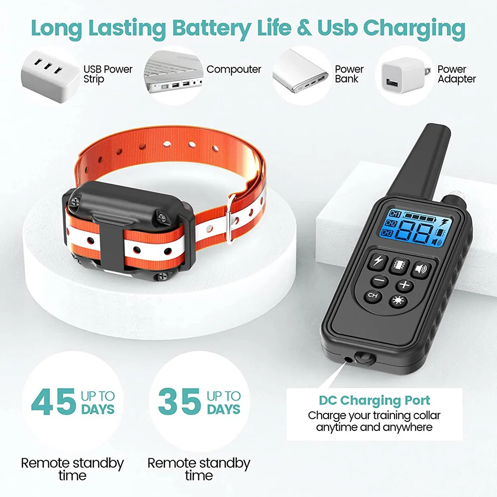 800m Electric Dog Training Collar Waterproof Pet Remote Control Rechargeable training dog collar with Shock Vibration Sound
