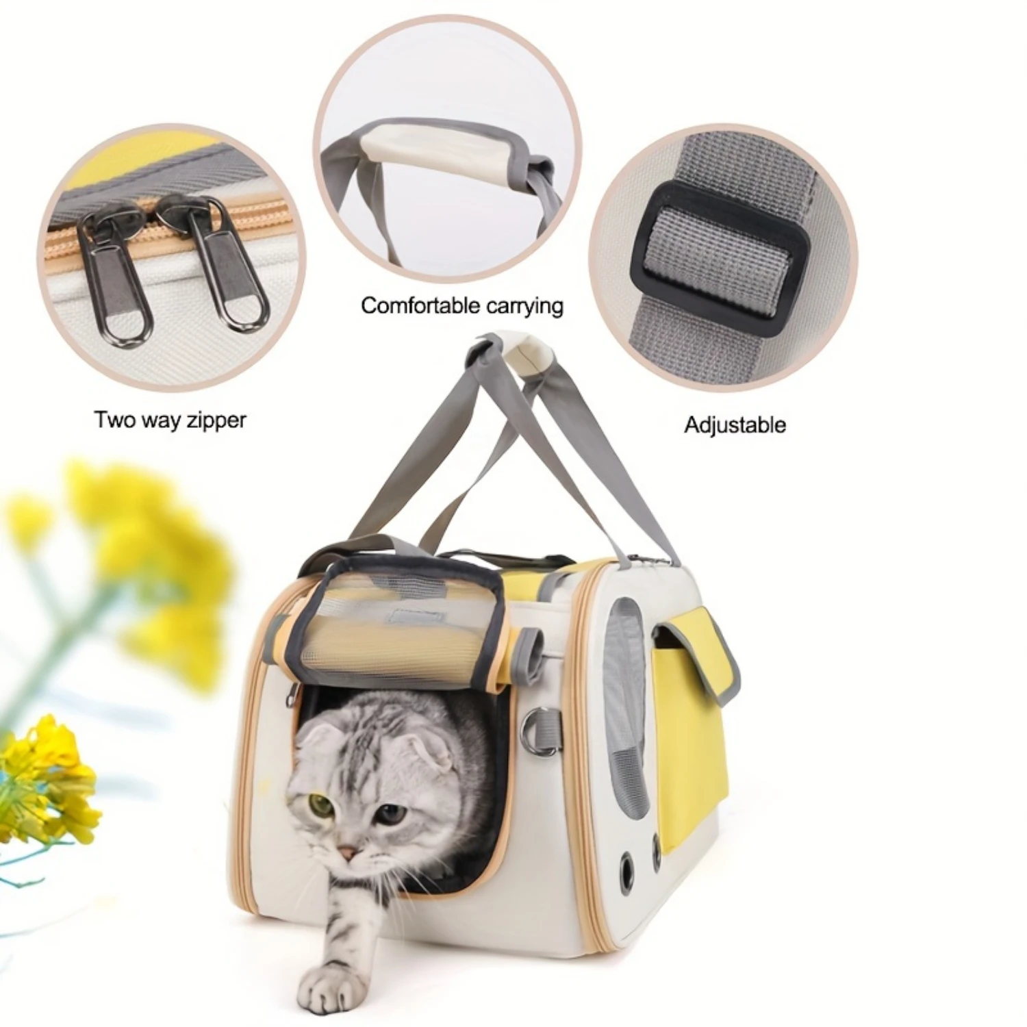 2. Our Adjustable and Collapsible Cat Carrier is not only stylish but also practical. With a waterproof and padded design, this soft-sided carrier provides comfort and security for your pet during travel. Airline approved and compact for easy storage.