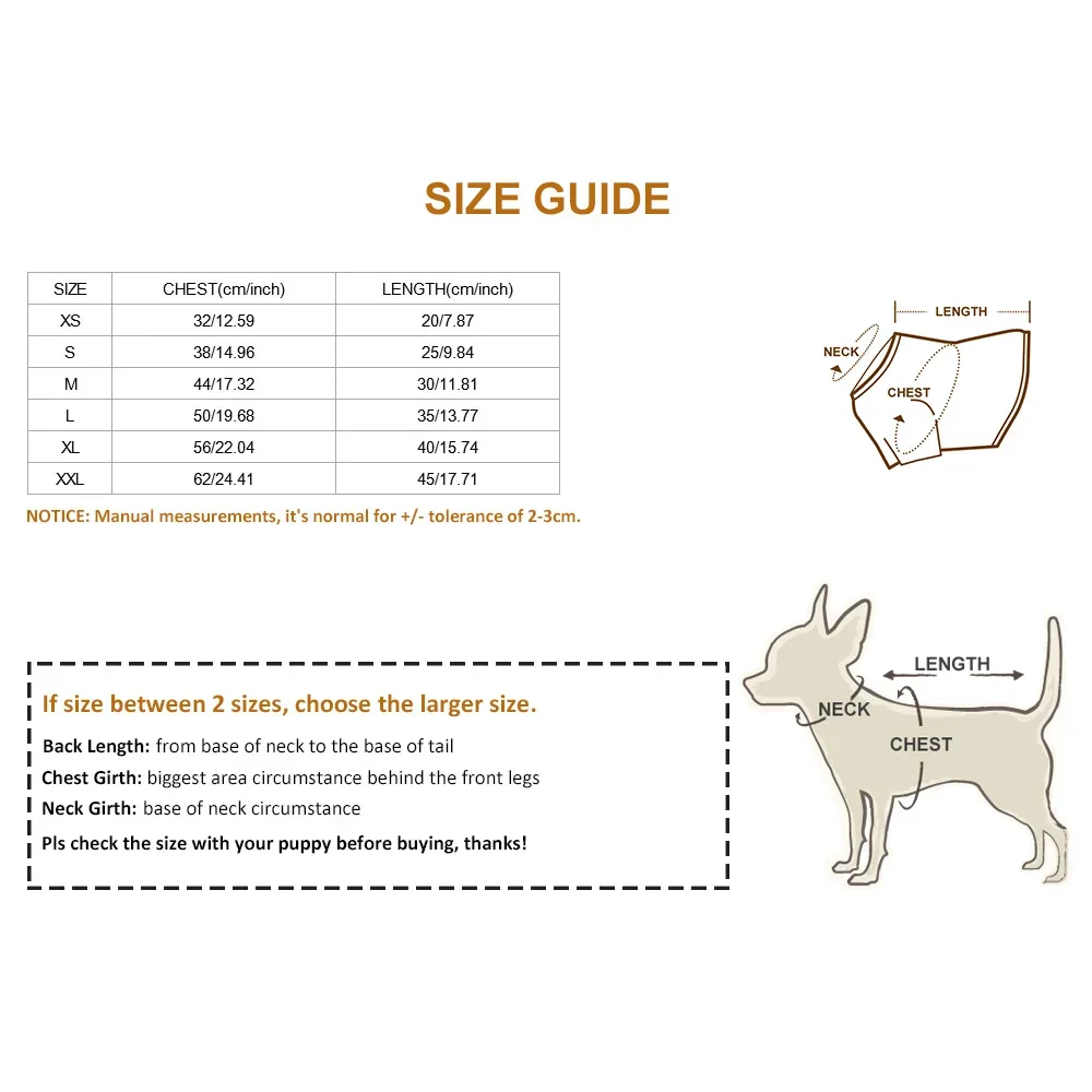 XXL: Chest 24.41″/62cm, Length 17.71″/45cm