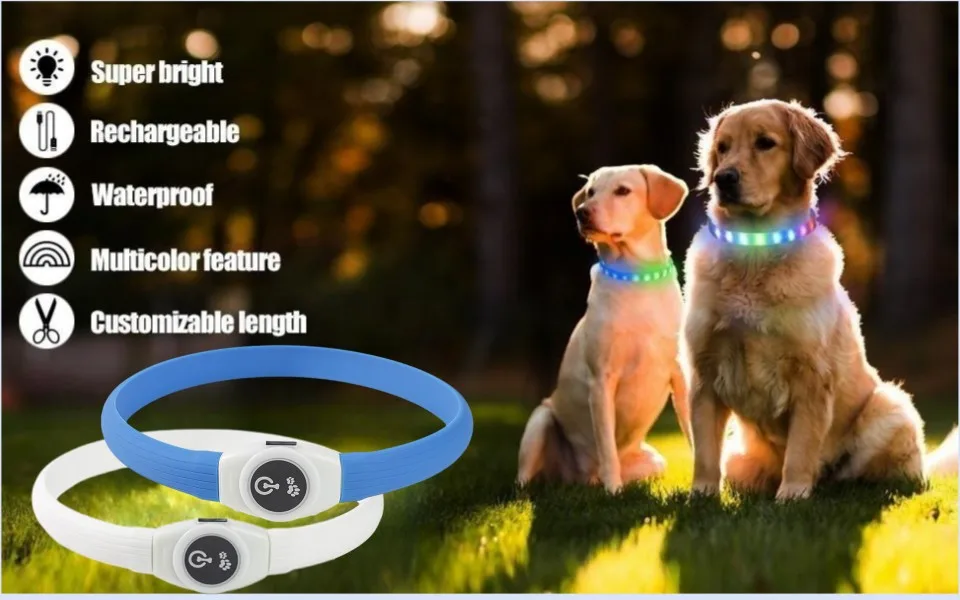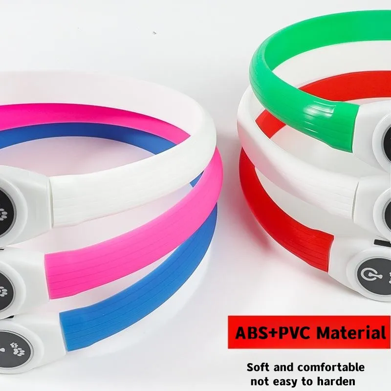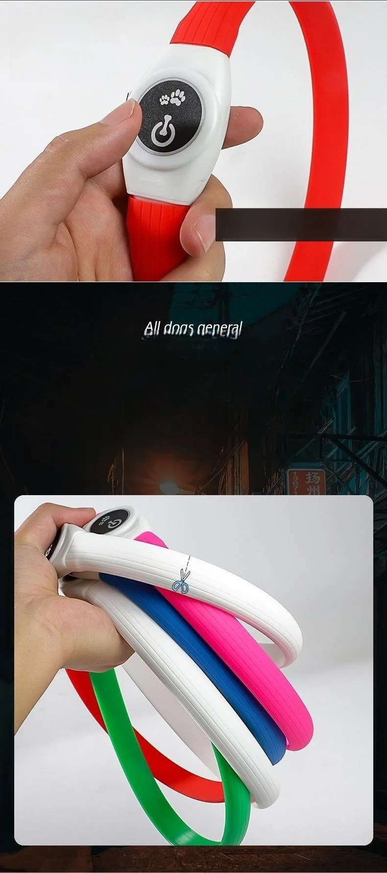 The LED collar is made of PVC waterproof strip material + LED lights.