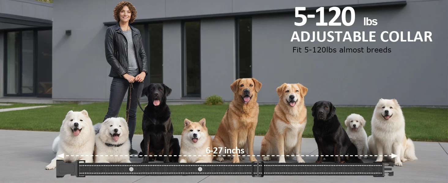 Soft, odor-free strap fits neck sizes from 6″ to 27″ and dogs from 5 to 120 lbs—ideal for small, medium, and large breeds.