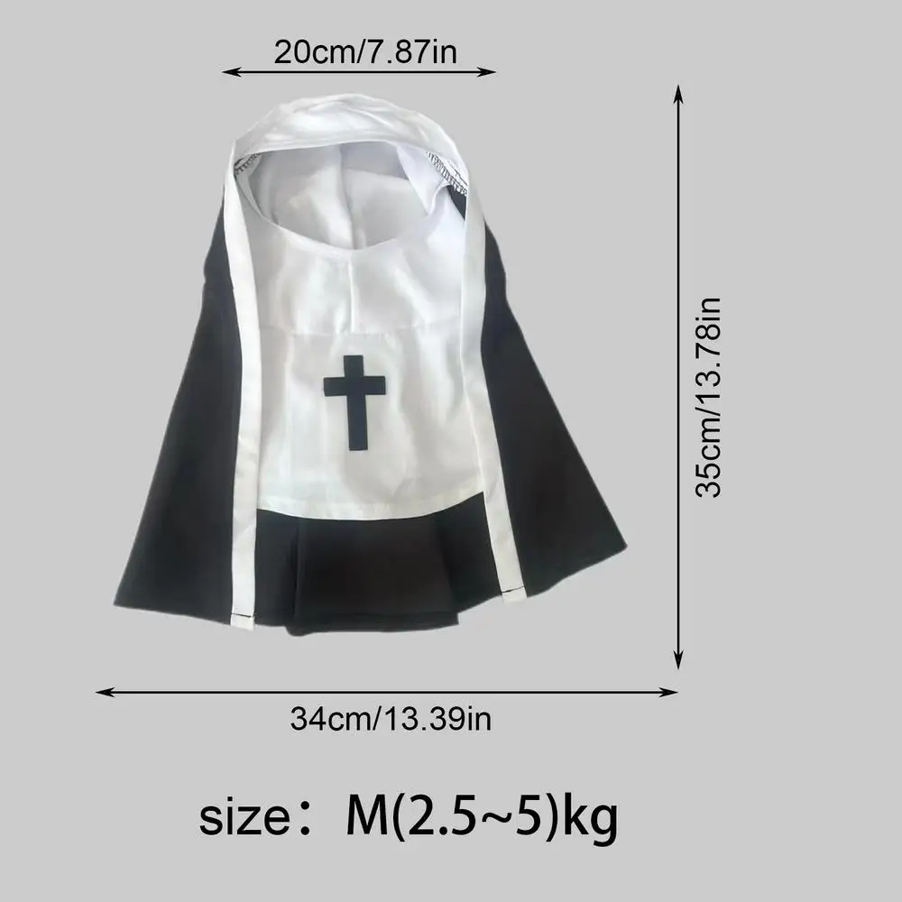 2.Highlight of Celebration: Bring some holiness to Halloween with the Pet Nun Costume for dogs. Cats can also wear it. Festive in black and white, comes with 1 x Nun Role Play Costume