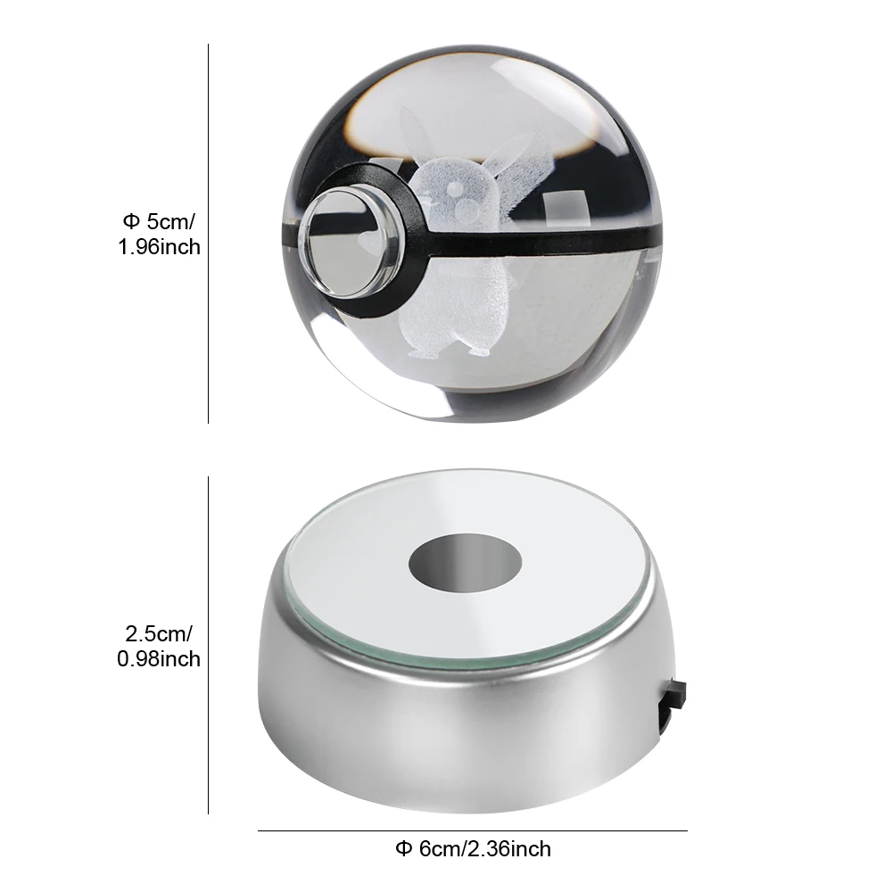 Pokemon Crystal Ball 5CM Mewtwo Pikachu Gengar Pokemon Ball Pokeball Figure Night Light Model with Led Light Base Toys Anime Christmas Gift