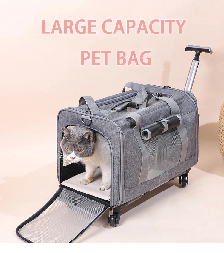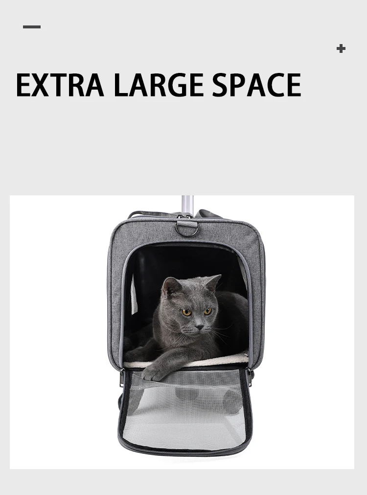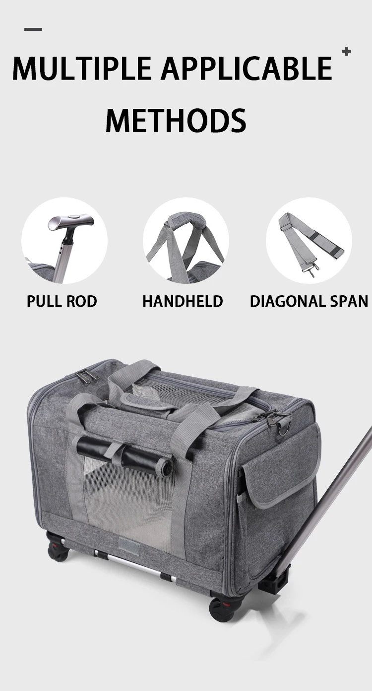 • CONVENIENT MOBILITY: Our pet travel carrier features smooth-gliding wheels and a telescopic handle, allowing you to easily transport your pet through airports, train stations, or any travel destination. It minimizes the strain of carrying, making travel more comfortable for both you and your pet.