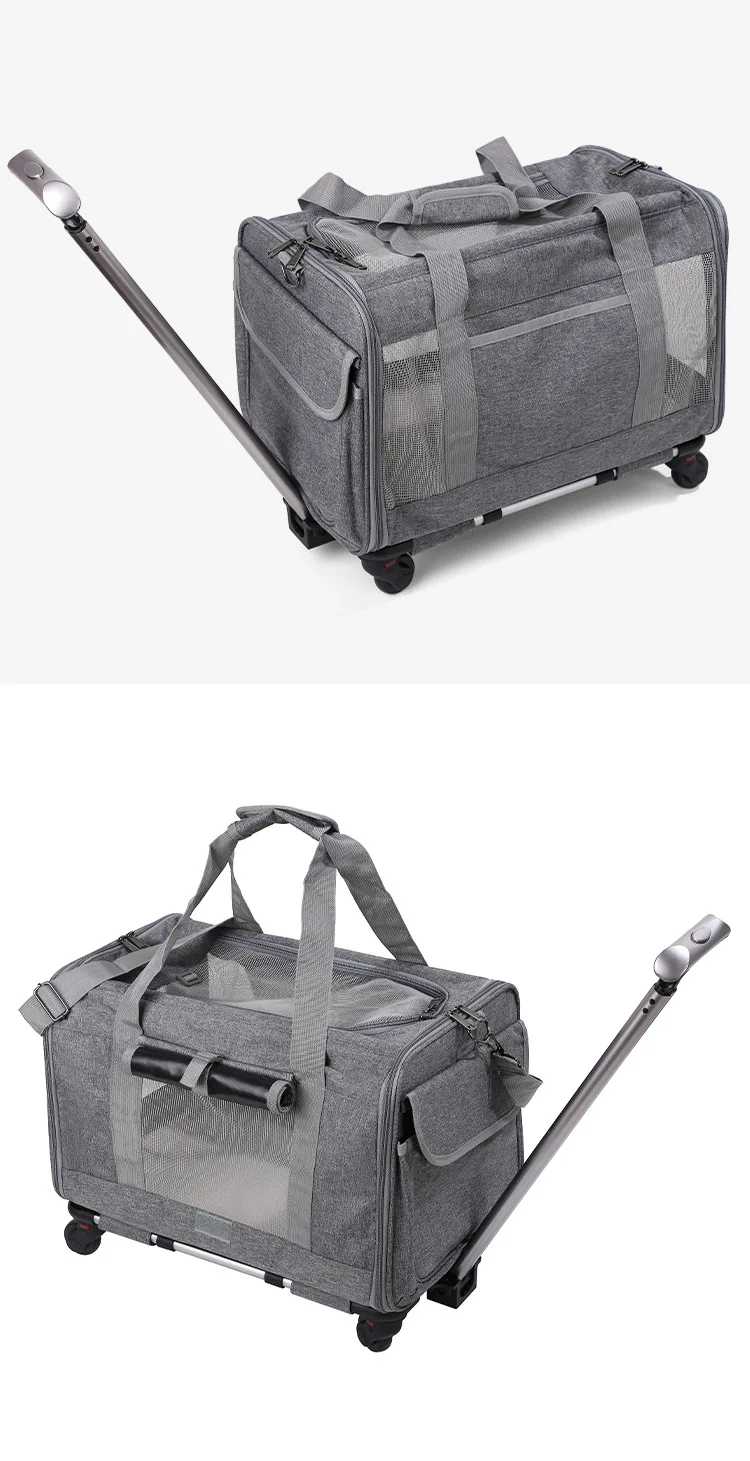 • VERSATILE DESIGN: This rolling pet carrier offers multiple carrying options, including wheeling, shoulder straps, and handles for easy lifting. Whether navigating crowded spaces or lifting into vehicles, this design ensures convenience at every step.