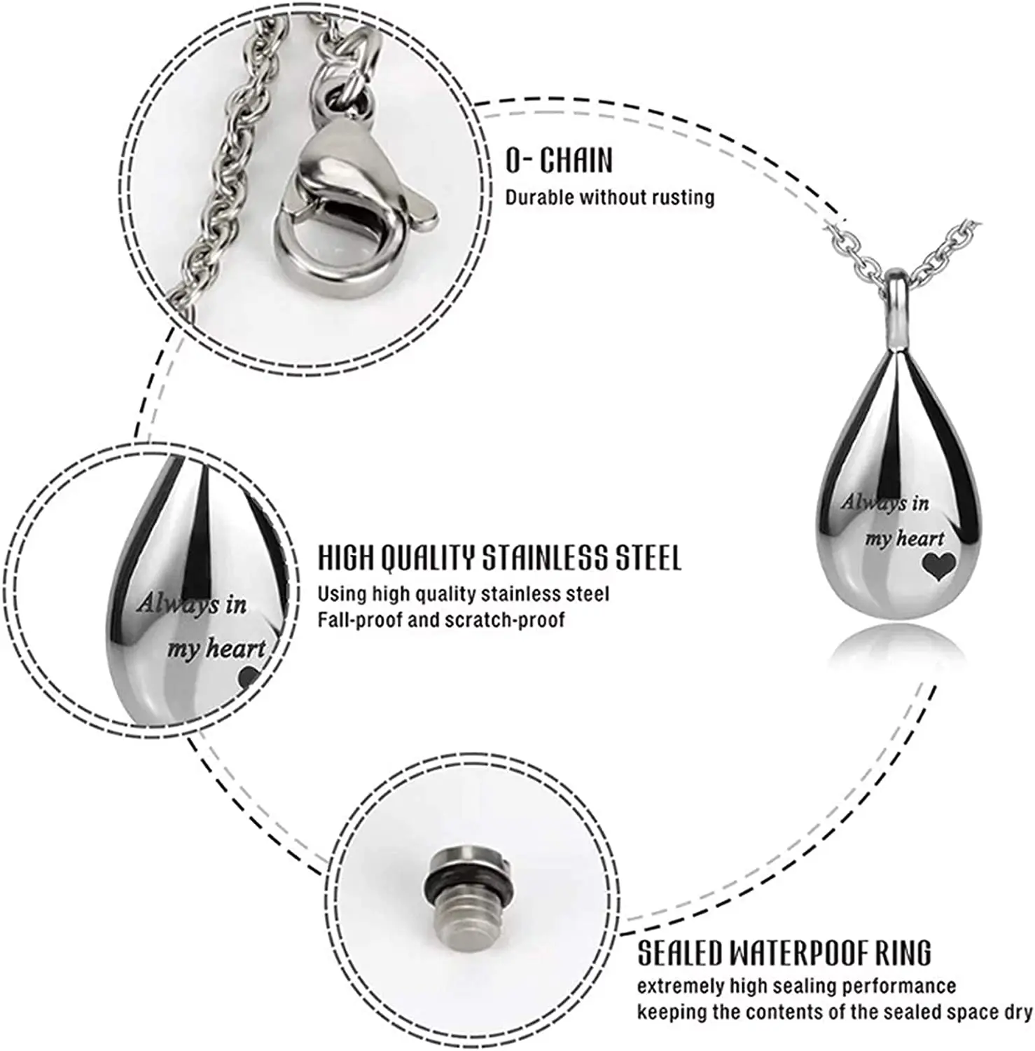 ♕ The pendant comes with a stainless steel chain. You will also receive a small funnel to help transfer the ash more easily, and it closes with a sealing screw.