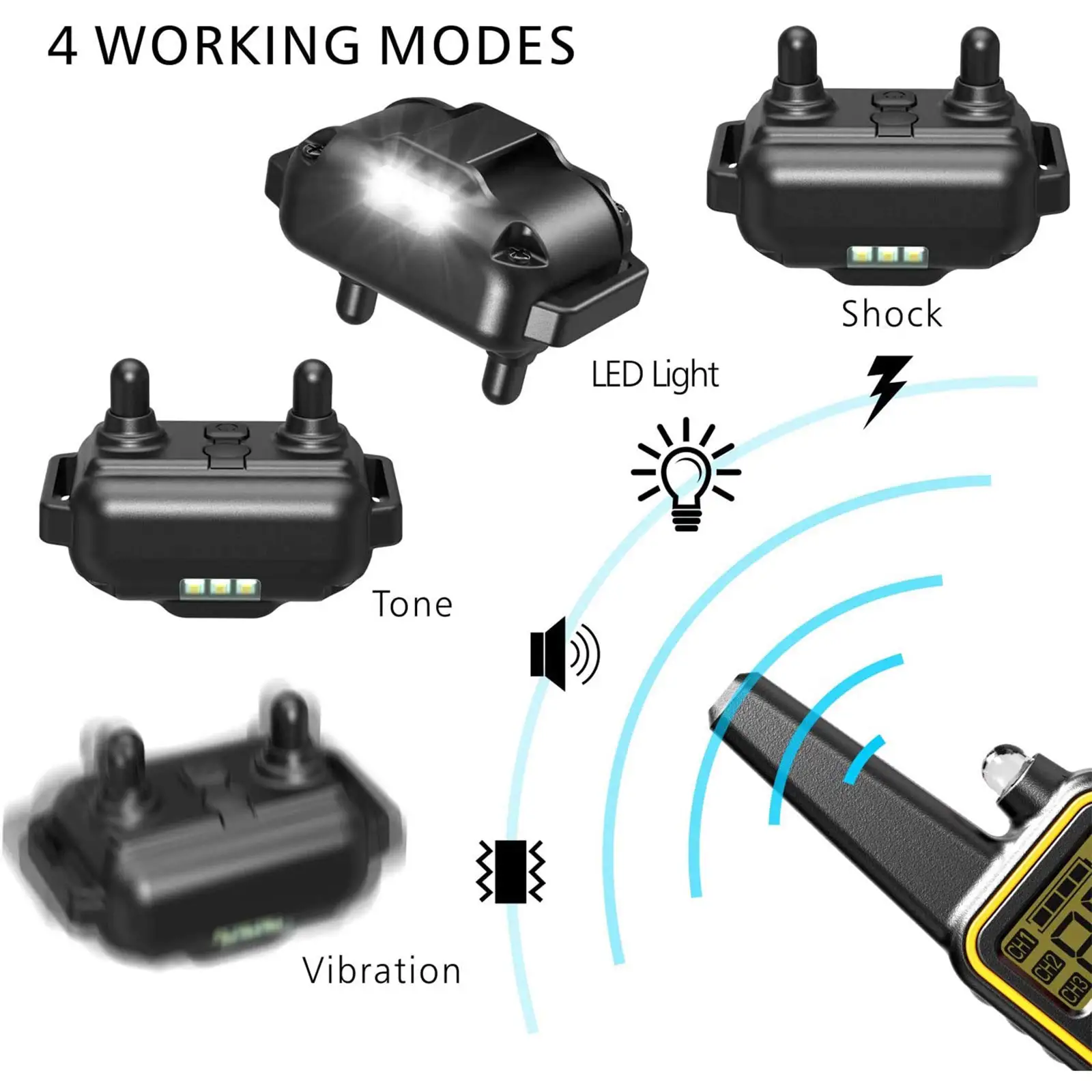 3 training modes: shock / vibration / sound