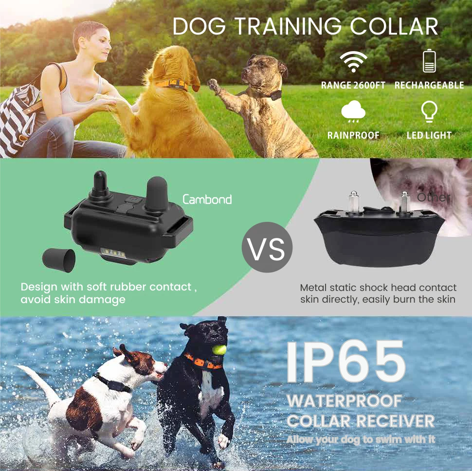 Fully waterproof design: the receiver has a super waterproof performance, so your pet can swim or walk in the rain with it
