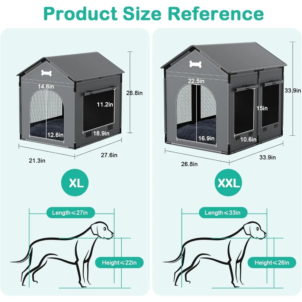 - Easy to Clean & Dry after Washing: The inner body of this dog house is made of 3-layer windproof and waterproof PVC coating wear-resistant Oxford cloth, which is resistant to dirt and easy to wipe. Also, you can use water pipe flushing and put the dog house in the sun to dry. Very convenient for daily use and clean